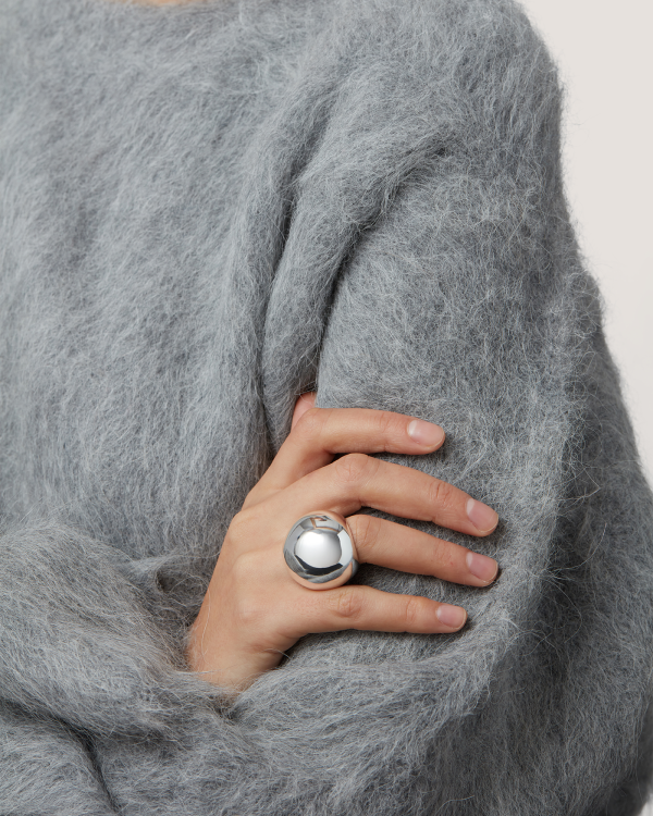 The sphere is the darling of the design world right now. Embrace this trend with an oversized spherical ring yielding galactic appeal. Finished in high-polish silver.